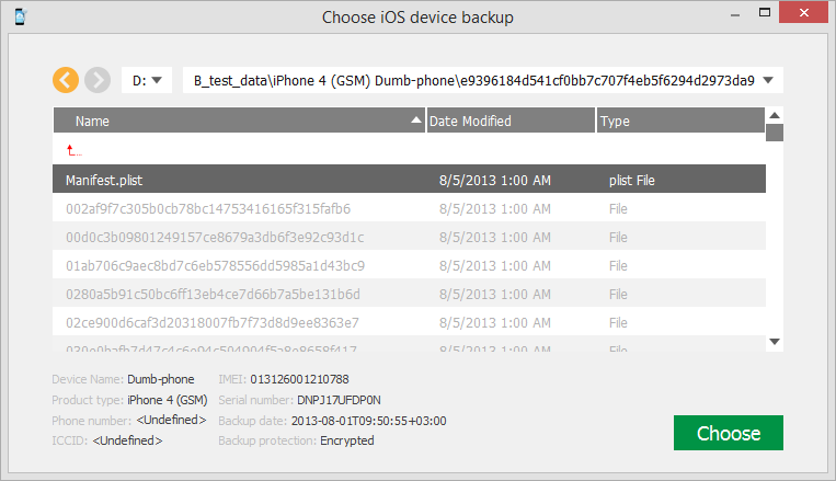 EPB running on Windows OS allows you to recover the passwords to iTunes backups The following files are necessary: